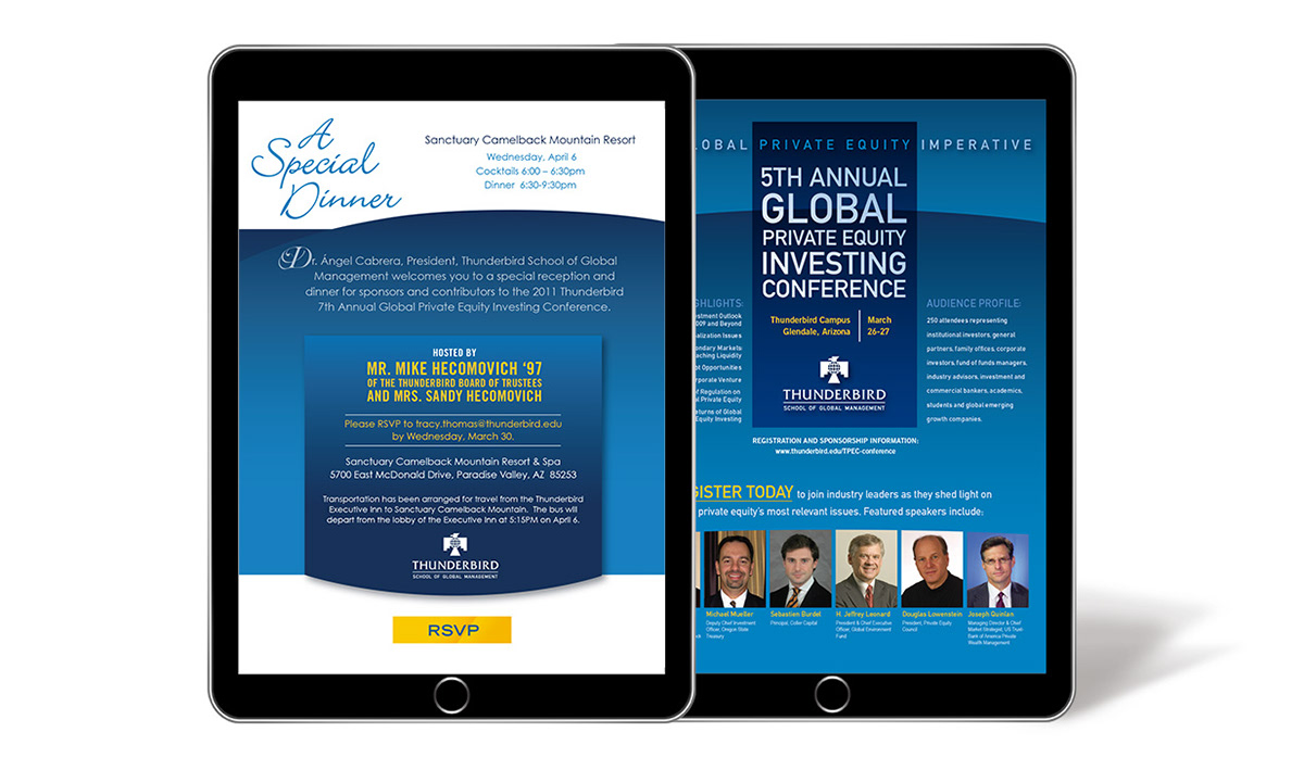 This global business school found itself with stale design standards that did not allow their in-house creative team to build fresh designs for new programs and conferences. They brought in JAC to freshly interpret the standards and build new design concepts for their annual investor conference and beyond.